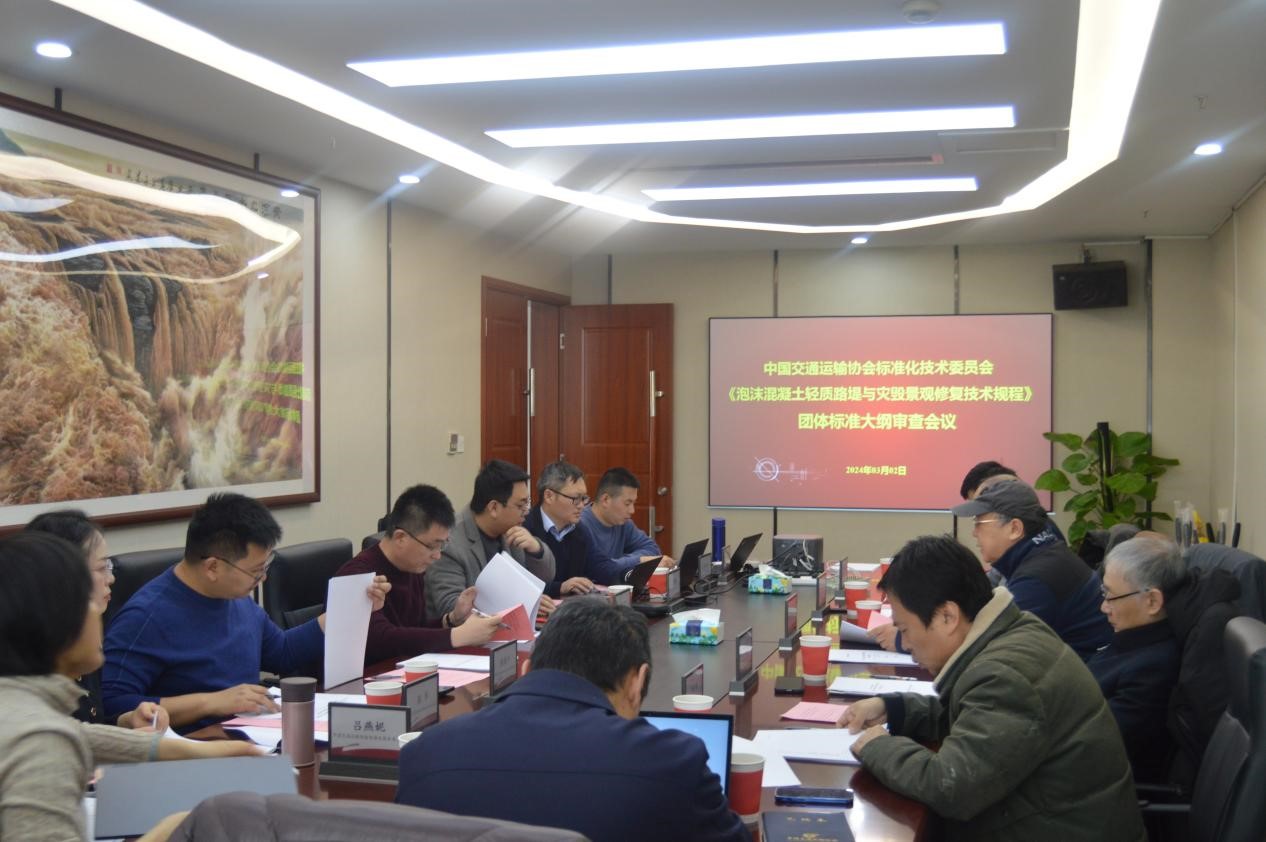 2024年3月2日,中國交通運輸協會標準化技術委員會(簡稱標委會)組織召開了《特殊路堤工程泡沫混凝土應用技術規程》團體標準大綱審查會議,新技術促進分會作為標準的提出單位,承擔了本次會務工作。